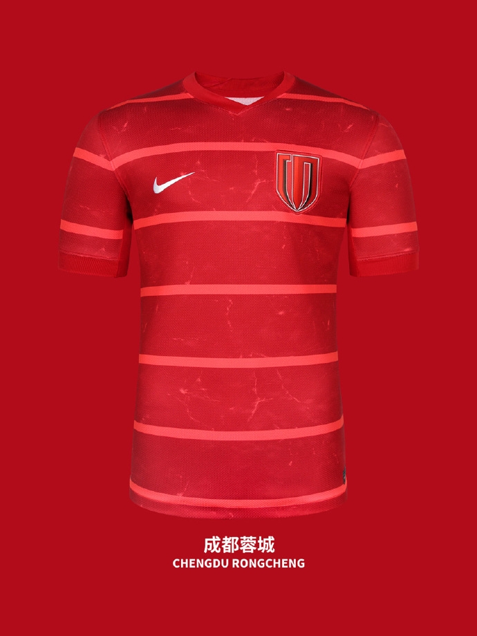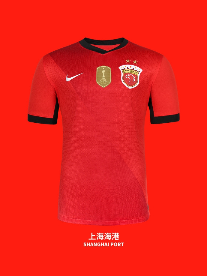 上赛季联赛和足协杯赛双料冠军上海海港队的新款主场球衣依然以红色作为主色调,不过与以往的版本相比,今年的球衣在领子下方增加了一枚金色的盾牌。据了解,这个特别的配饰是冠军队伍的象征,也是赞助商首次使用这种类型的设计。金色的盾牌中间,还有一个以中超冠军奖杯——火神杯为设计灵感的徽章,下方则标有夺冠年份,算得上中超历史上第一件拥有“冠军配置”的球衣。