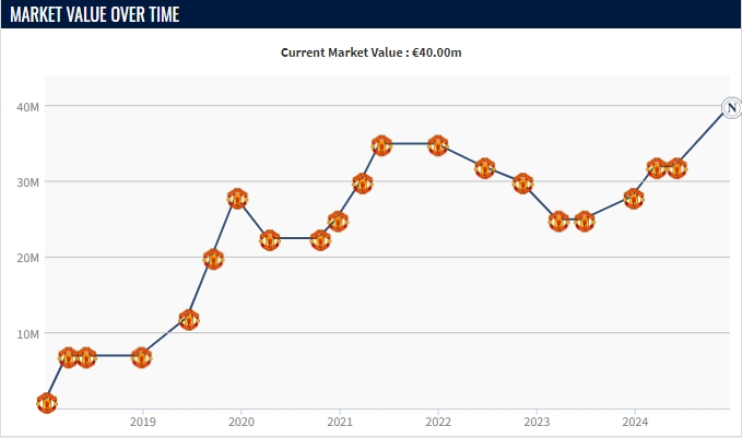 麦克托米奈去年夏窗从曼联加盟那不勒斯,转会费3000万欧,加盟时德转身价3200万欧,本赛季涨到了4000万欧,创生涯新高。本赛季,小麦为那不勒斯出战32场比赛,贡献12球4助攻,其中意甲30场11球4助攻,是那不勒斯争冠的关键球员。