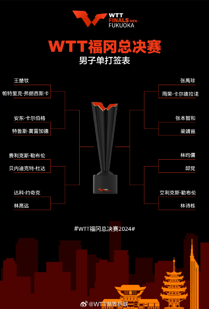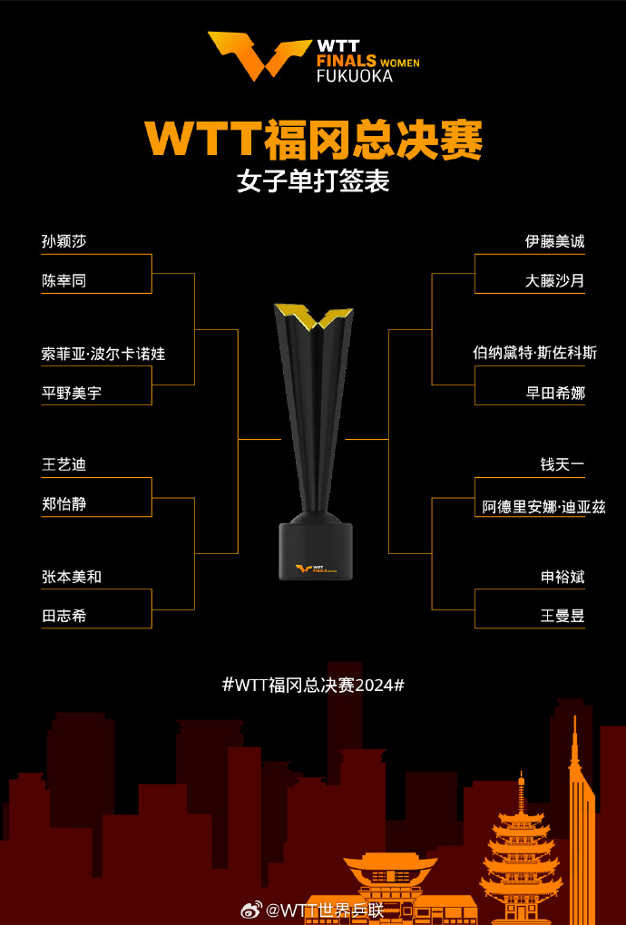 🔥WTT总决赛签表:孙颖莎首轮迎战陈幸同 王楚钦对阵弗朗西斯卡